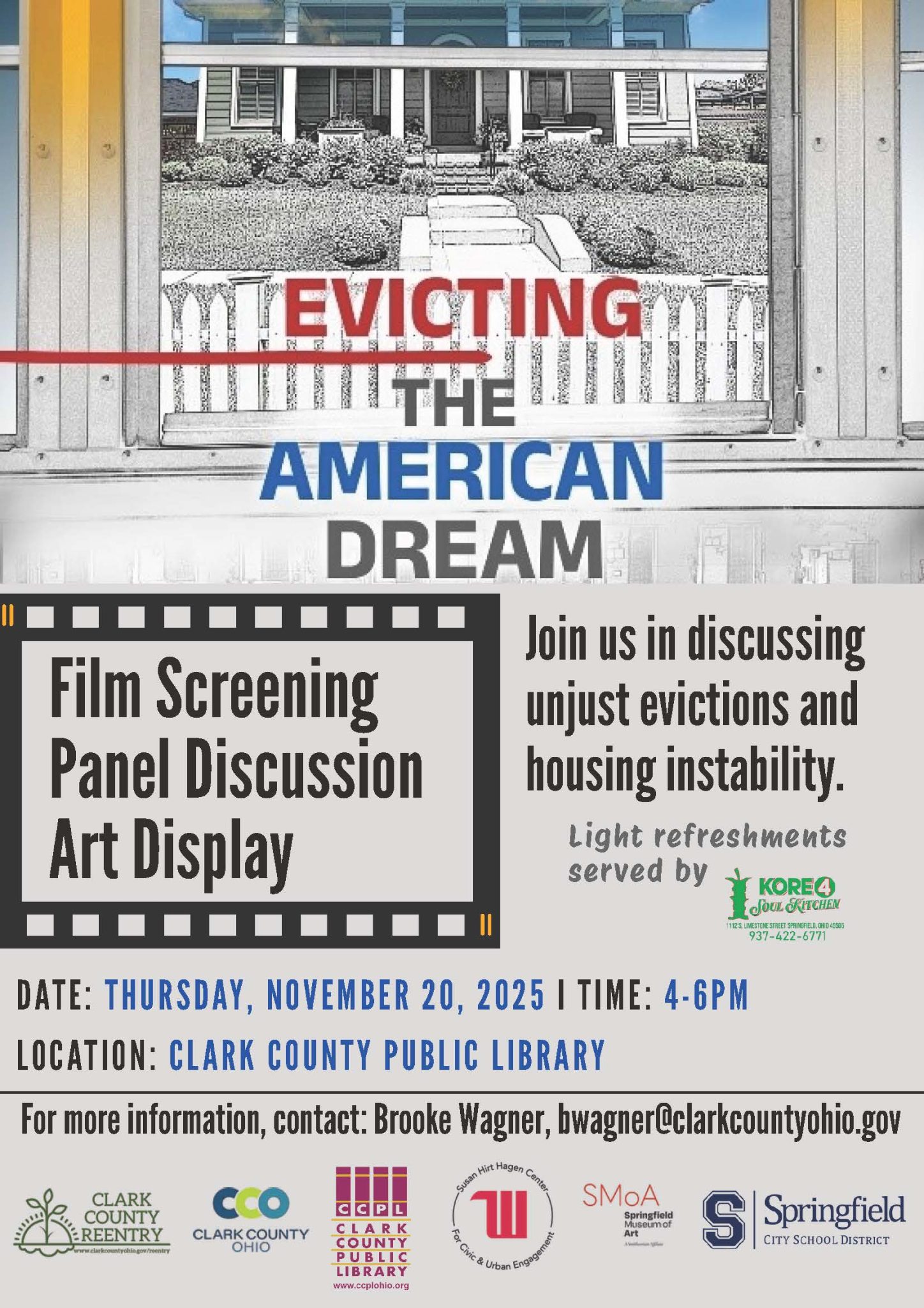 Presented in collaboration with Clark County Reentry, Clark County Ohio, Clark County Public Library, Springfield Museum of Art, and Springfield City School District.